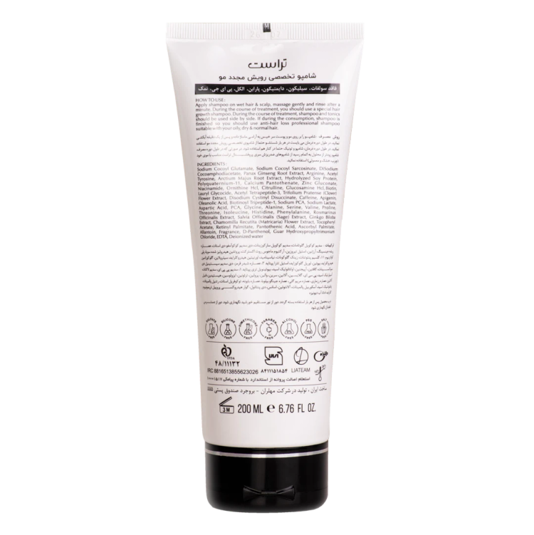 شامپو را بر روی مو و پوست سر خیس به آرامی ماساژ داده و پس از یک دقیقه آبکشی شود. در طول دوره درمان، میبایست در هر بار شستشو حتما از شامپوی تخصصی رویش مجدد مو استفاده نمایید. در طول دوره درمان، شامپو و محلول حتما در کنار هم استفاده شوند. در صورتی که در طول دوره مصرف، شامپو زودتر از محلول به پایان رسید، از شامپوهای ضد ریزش سری تخصصی تراست مناسب با موی خود (چرب، خشک و معمولی) استفاده نمایید.