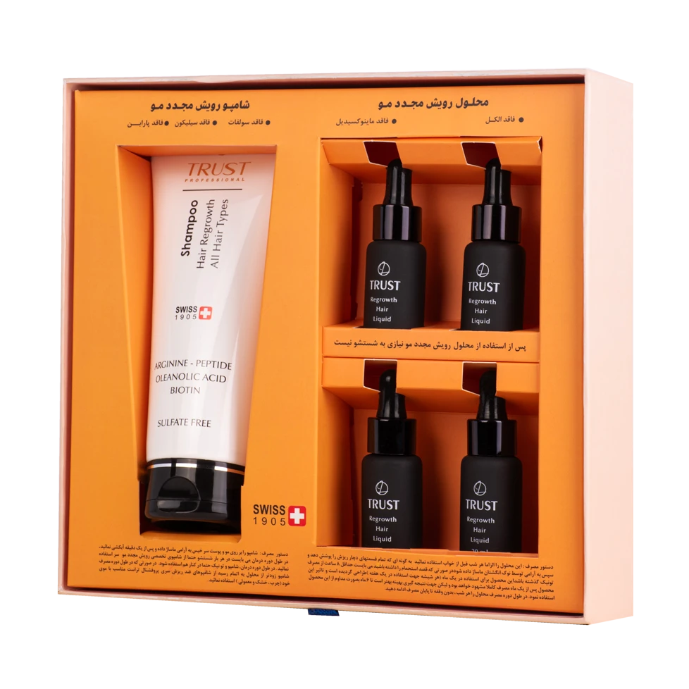 این کیت، مختص افرادیست که بارها از محصولات ضد ریزش موجود در بازار استفاده کردهاند اما نتیجه دلخواه خود را کسب نکردهاند! کیت تخصصی رویش مجدد تراست با استفاده از ترکیبات طبیعی، برای تاثیر گذاری بیشتر طراحی شده است و در مدت زمان 6 ماه، اثرات چشمگیری بر رشد مو خواهد داشت.
