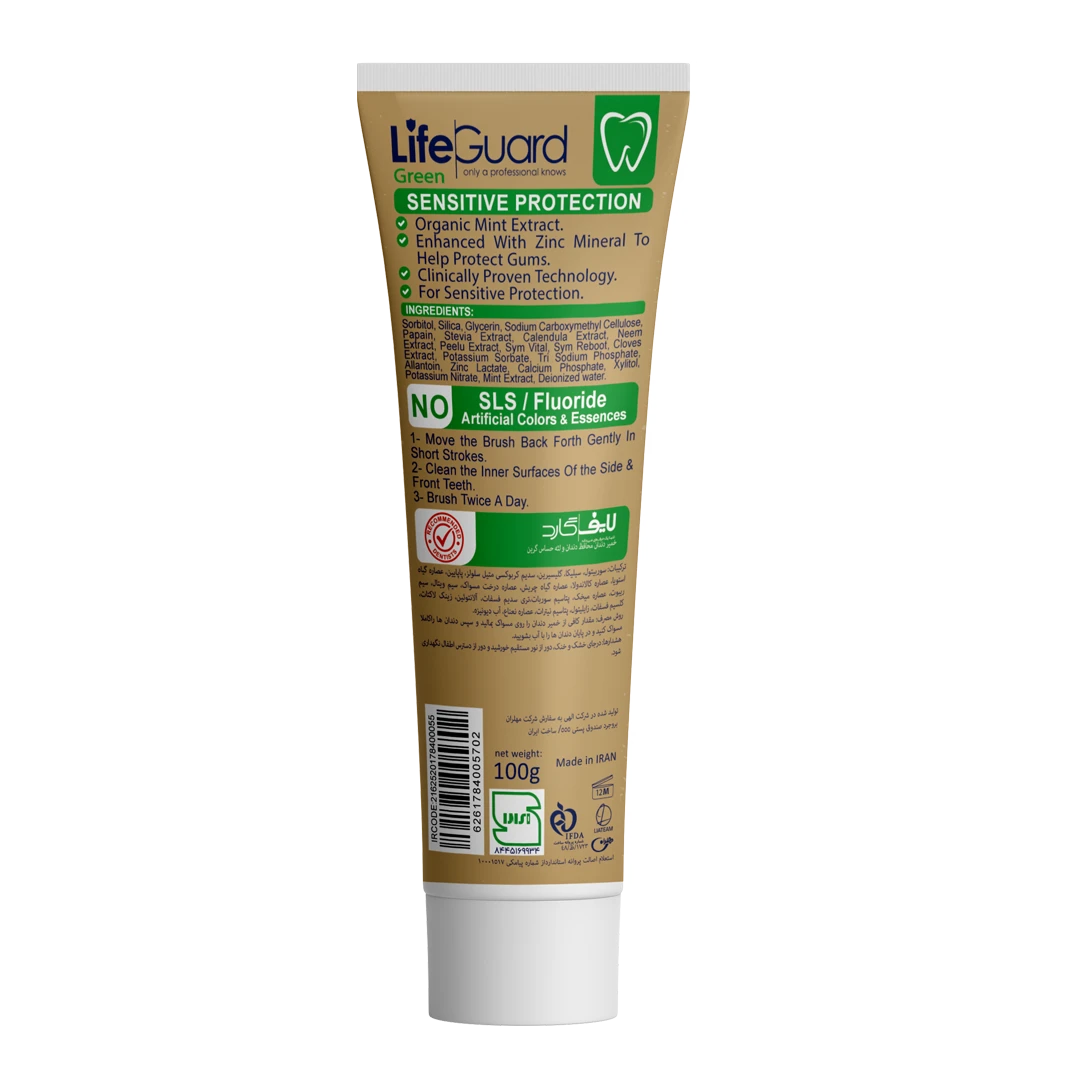 خمیر دندان محافظ دندان و لثه حساس گرین برند لایف گارد با حجم 100 گرم