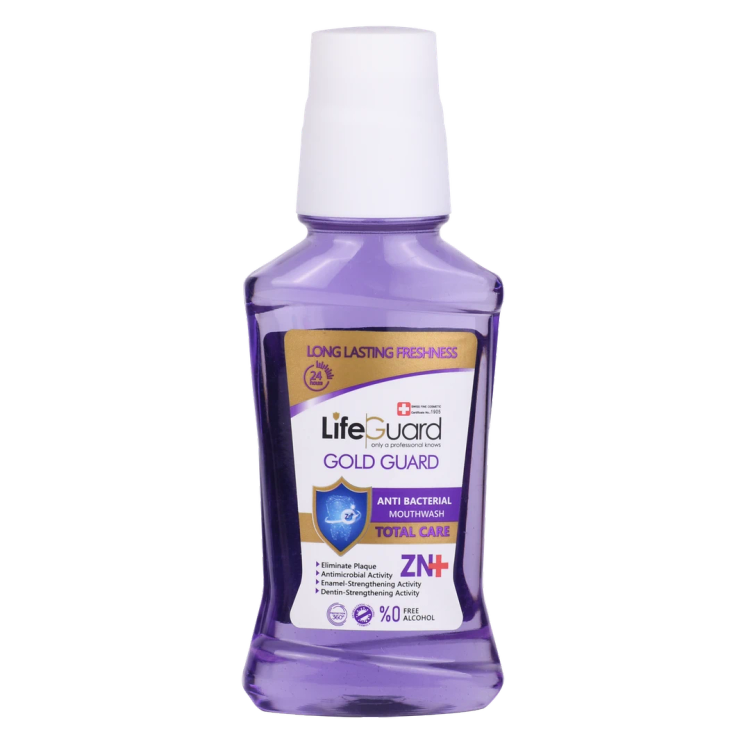 دهانشویه بزرگسال توتال (Gold Guard) برند لایف گارد برای بهداشت دهان و در حجم 270 میلیلیتر طراحی و تولید شده است؛ این دهانشویه، ویژگیهای منحصربهفردی دارد که به دهان شما حس و حال تازگی بخشیده و درخشش بینظیری را برای لبخند شما به همراه میآورد.