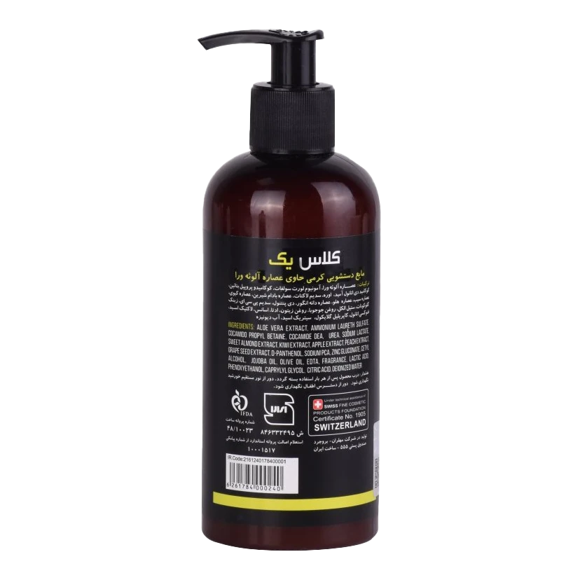 مایع دستشویی کرمی کلاس یک حاوی عصاره آلوئه‌ورا
