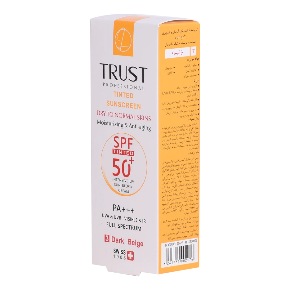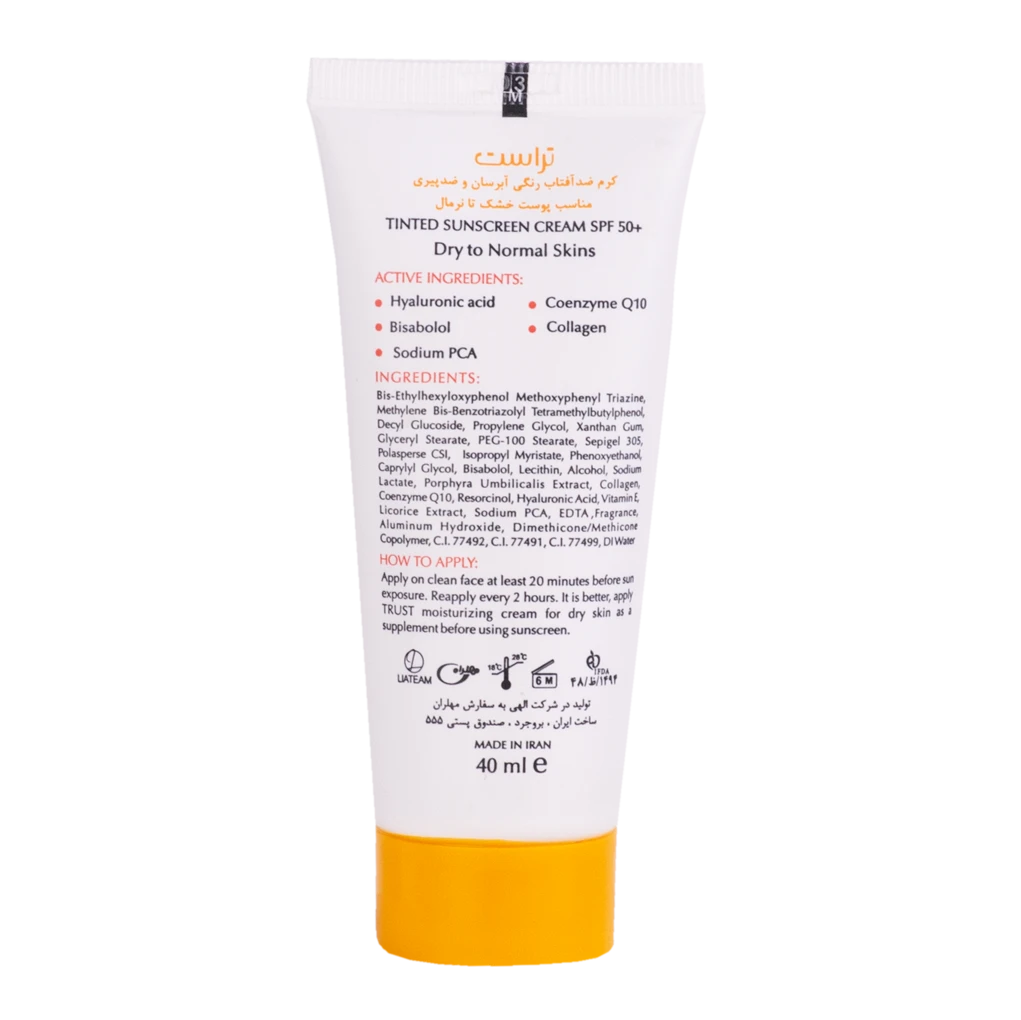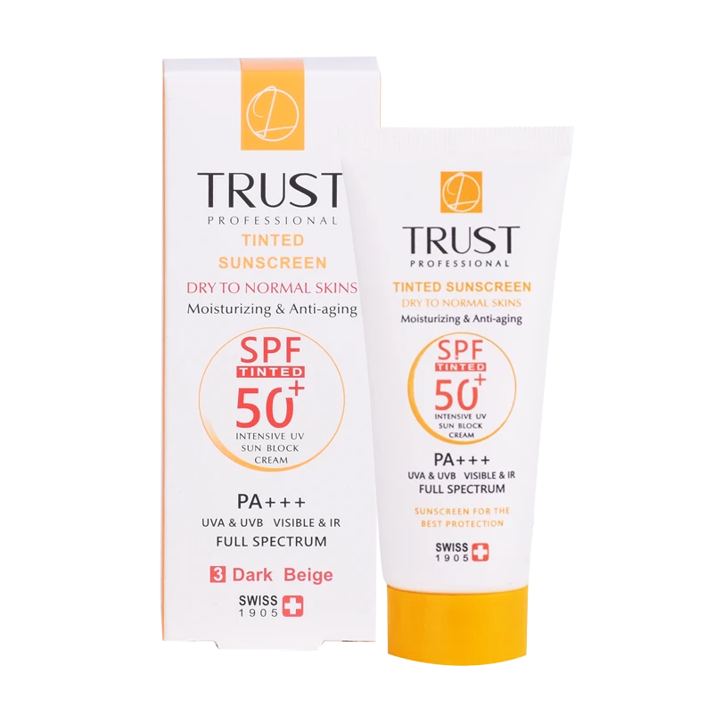 کرمهای ضدآفتاب رنگی تراست با SPF50+ از مرغوبترین و جدیدترین مواد اولیه موثره دارای حداکثر حفاظت دربرابر پرتوهای مضر خورشید ساخته شدهاند؛ این کرم با وجود بهرهمندی از بافتی سبک، دربرابر آسیبهای وارده توسط نور خورشید به خوبی از پوست محافظت و با مهار رادیکالهای آزاد از تخریب سلولهای پوستی جلوگیری میکند. همچنین با مصرف این محصول، بدون بسته شدن منافذ پوستی و ایجاد خلل در تنفس سلولهای پوستی، پوستتان آبرسانی میشود.