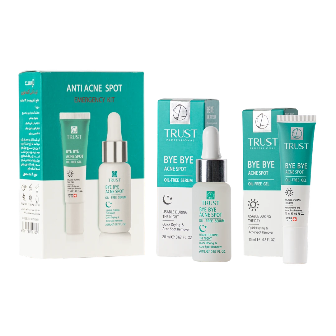 کیت آنتی آکنه فوری تراست با قابلیتهای زیادش به رفع سریع آکنه روی پوست صورت شما کمک میکند. این سرم و ژل، همچنین چربی پوست را با لایهبرداری ملایم در آن ناحیه کاهش میدهند.