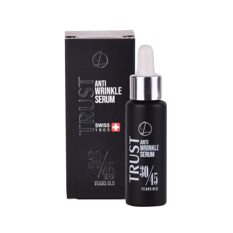 سرم ضدچروک صورت تراست (مناسب 30 تا 45 سال)، با داشتن ترکیبات فعال آبرسان و پپتیدهای تقویتکننده پوست، باعث تحریک تولید کلاژن در پوست و آبرسانی آن میشود. ترکیب هیالورونیک اسید به صورت همافزا با سدیم پی سی ای و زایلیتول، علاوه بر آبرسانی، به رفع چینوچروکهای پوستی کمک میکند. ترکیب گلوکونولاکتون خاصیت لایهبرداری داشته و ضمن از بین بردن سلولهای مرده پوست آن را آبرسانی نیز میکند. این سرم از آسیب رادیکالهای آزاد ناشی از پرتوهای UV به پوست جلوگیری کرده و از بروز چینوچروک روی پوست پیشگیری میکند.