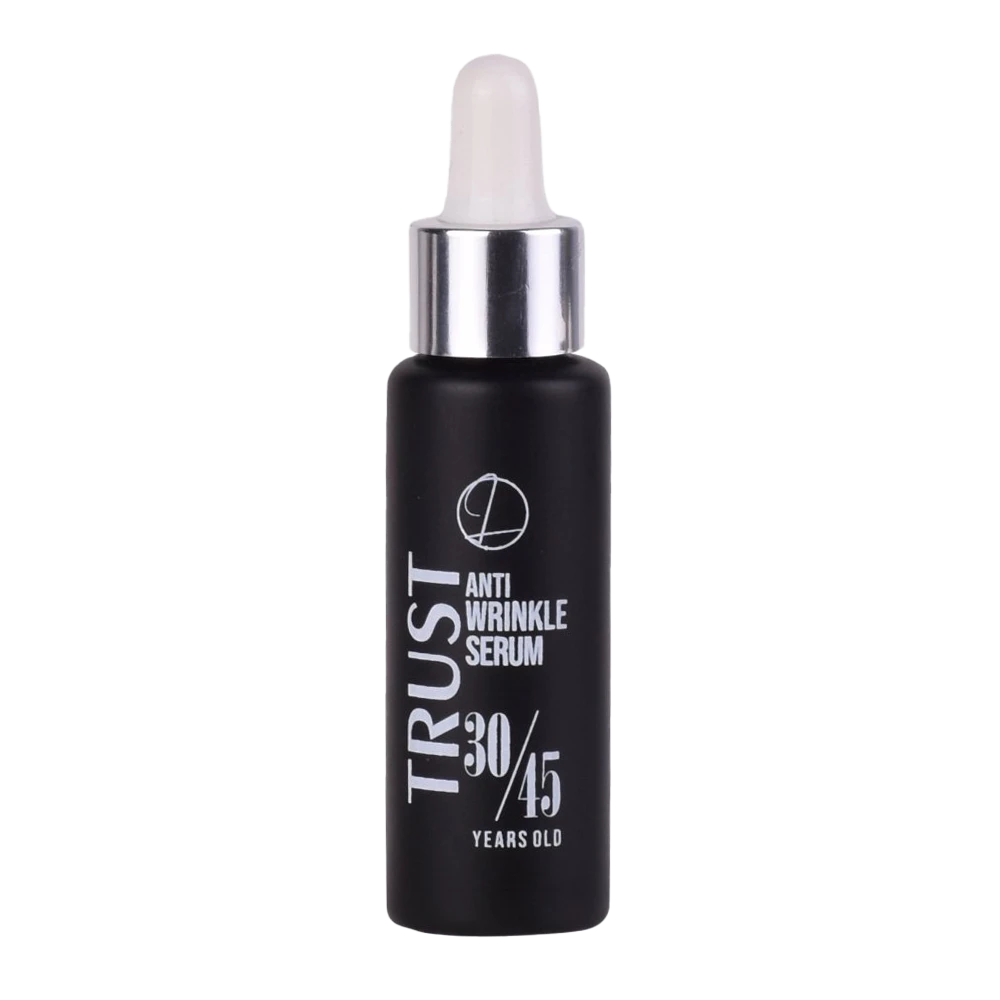 سرم ضدچروک صورت تراست (مناسب 30 تا 45 سال)، با داشتن ترکیبات فعال آبرسان و پپتیدهای تقویتکننده پوست، باعث تحریک تولید کلاژن در پوست و آبرسانی آن میشود. ترکیب هیالورونیک اسید به صورت همافزا با سدیم پی سی ای و زایلیتول، علاوه بر آبرسانی، به رفع چینوچروکهای پوستی کمک میکند. ترکیب گلوکونولاکتون خاصیت لایهبرداری داشته و ضمن از بین بردن سلولهای مرده پوست آن را آبرسانی نیز میکند. این سرم از آسیب رادیکالهای آزاد ناشی از پرتوهای UV به پوست جلوگیری کرده و از بروز چینوچروک روی پوست پیشگیری میکند.